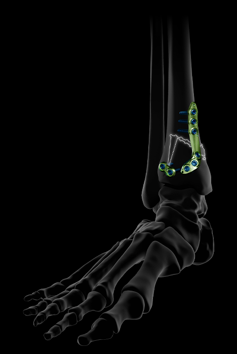 Ces plaques sont utilisées pour le traitement des déformations varus de la cheville, via une ostéotomie d’ouverture médiale du tibia distal (ostéotomie de valgisation).